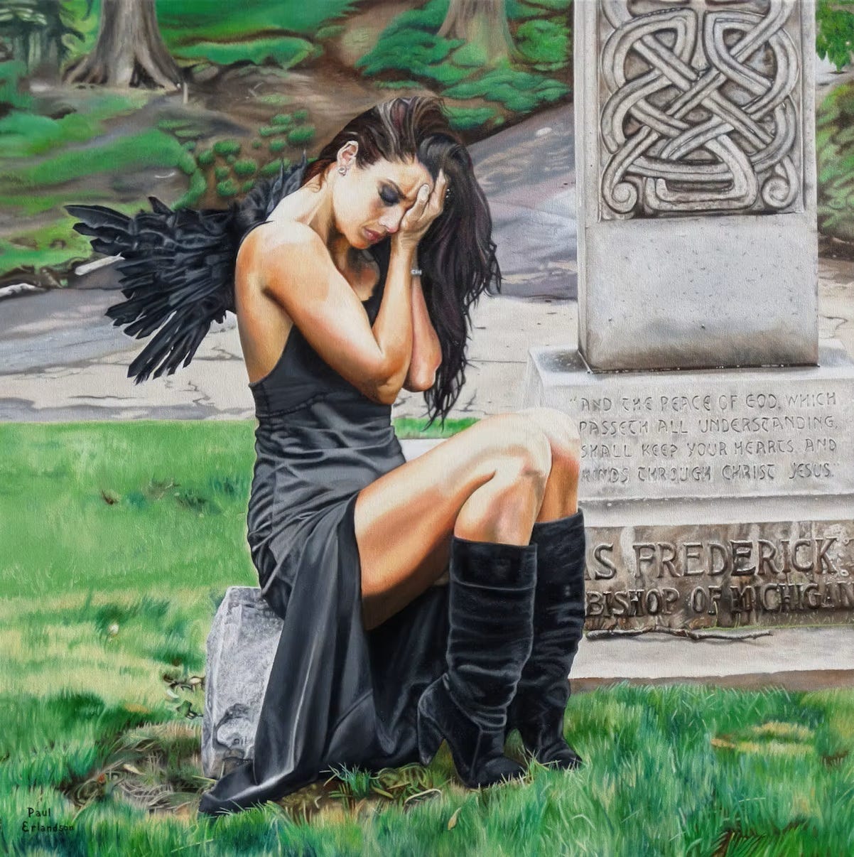 That was the beginning of my difficult friendships with artists and models. I didn’t help myself back in those days, by being clear and perhaps sometimes forceful about my political views. Some few of my fellow artists could tolerate me, forgiving the politics for the greater commonality we had found in art. Others could not. The model for the “sinful woman” in this modern adaptation of Luke 7 was a very politically vocal individual: non-binary, intersectional, BLM, Trump-hating, etc. At the photo shoot, we exchanged “socials”, but I said to myself she wouldn’t be able to stand me for more than 2 weeks. But I was wrong. We ended up as friends for more than ten years, and she even visited my church once, and also a church picnic. But she utterly disconnected and discarded me after the 2024 Presidential election. No communication since then. I miss her rather badly.
